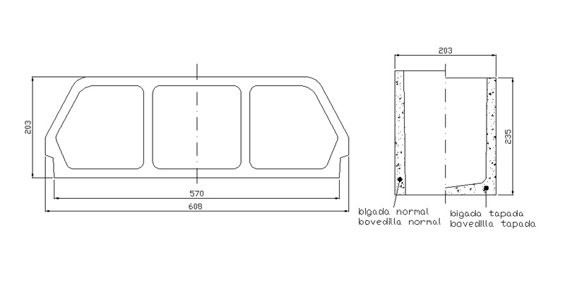 Peça prefabricada de formigó que s’utilitza en forjats com a peça de entrebigat com a funció alleugerant (encofrat perdut).